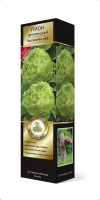 Пион древовидный - цветок густомахровый, шаровидно-корончатый,12*6 см, светло-салатового цвета с тёмно-фиолетовыми вкраплениями в основании лепестков. Внутренние лепестки плотно прилегают друг к другу, полностью скрывая сердцевину. Цветки смотрят в стороны или вниз. Стебли тонкие, гибкие. Цветение обильное, в поздние сроки. Высота 120-150 см. Один из самых редких сортов. Местоположение: солнце.Почва: нетребователен к почвенным условиям, но лучше растет на плодородной, щелочной, хорошо дренированной почве.Устойчивость к условиям среды и болезням: устойчив к болезням и вредителям.Использование: одиночные и групповые посадки.