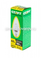 Лампа галогенная 42 Вт (аналог 75 Вт) Е27 (большой цоколь) свеча (Старт) 133576