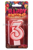 Свеча для торта цифра 3 (5*7,5*1,2 см) на блистере (Волшебная страна) 312499 119064