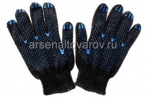 Главная / Каталог / Хозтовары / Перчатки, рукавицы / Перчатки ХБ / Перчатки рабочие х/б с ПВХ 7,5 класс Точка Двойные черные (черный манжет) (Россия) 134943