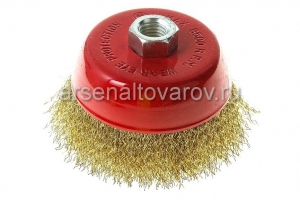 Щетка-крацовка для УШМ чашка 100 мм гайка М14 латунированная проволока 0,3 мм Хобби (45-1-005) 052373