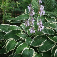 Хоста Форчуна – среднекрупная, быстро растущая хоста. Листья сердцевидные или сердцевидно-яйцевидные, снизу с восковым налетом, длиной до 13 см, шириной до 9 см. Цветки лиловые. Цветоносы до 50 см высотой. Цветение июль-август.Франсе - высота куста 50 см, ширина 70 см, листья темно-зеленые с узкой чисто белой полосой по краю, цветки лиловые.
