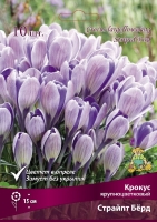 Крокусы крупноцветковые - это очень плодовитые неприхотливые растения, которые украшены действительно крупными бокаловидными цветками: в среднем раза в 2 крупнее, чем у диких предков. Многие гибриды различаются незначительными деталями окраски или размером, что становится заметным только при совместном выращивании. Окраска бывает белой, всех оттенков сиреневого, лилового и фиолетового цвета и двуцветная так называемая сетчатая или полосатая.Страйпт Бёрд - высота растения 15 см. Очаровательные весенние первоцветы. Красиво смотрятся группами в смешанных цветниках или на фоне газона. Цветы интересной окраски: внутренняя сторона лепестков сиреневая, внешняя - светлее с легким кремовым оттенком и тонким сиреневым штрихом.Месторасположение: хорошо развиваются на освещенных, прогреваемых солнцем местах. В тени цветки не раскрываются полностью.Почва: предпочитают рыхлые водопроницаемые питательные почвы.