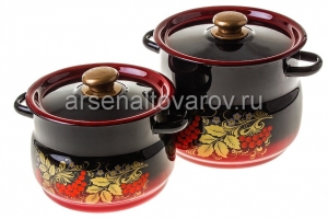 Набор посуды эмалированный 2 предмета (4 л + 5,5 л) №10L05 Рябинка красно-черная (Сибирские товары 077165