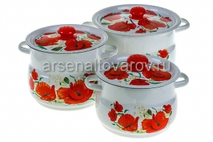 Набор посуды эмалированный 3 предмета (4 л + 5,5 л + 8 л) №11 Маки (N11B67) (Сибирские товары) 107971