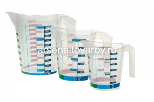 Кружка мерная пластиковая (уп из 3 шт) 0,3 л, 0,5 л, 1 л Домино (587) прозрачная (Эльфпласт) 135107