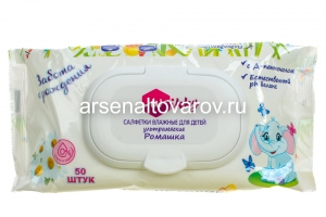 Салфетки влажные 50 шт Викки детские ромашка с крышкой (Россия) 131332