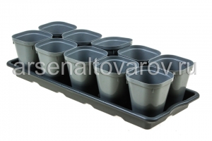 Набор для рассады пластиковый (поддон 16,5*41,2 см + горшки 10 шт*300 мл) (М8236) микс (Башкирия) 135090