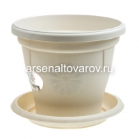 Кашпо для цветов пластиковое 3,5 л 21,5*18,5 см с поддоном бежевое Италия (430) (Эльфпласт) 136559