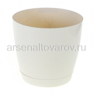 Кашпо для цветов пластиковое 1,8 л 15*15 см с поддоном слоновая кость Крокус (07059) (Ар-Пласт) 135091