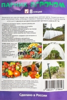 Парник Агроном надежно защищает растения: ранней весной от холодов и заморозков, летом – от палящих лучей солнца, поздней осенью – от сильных ветров и листопада.Для каркаса парника Агроном 8 секции используются жесткие и прочные пластиковые трубы, они сгибаются в виде дуг длиной 2 метра.Материал можно сдвигать вверх и вниз по дугам, что очень удобно для полива, сам же материал пришит к дугам и его не сорвет никакой ветер.Характеристики:Диаметр дуг: 20 мм;Длина дуги: 2 м;Материал дуг: ПНД пластик;Плотность материала: 45 гр/кв.м;Количество секций: 8.Материал из которых изготовлены дуги - специальный современный полимер. Он очень прочный, легкий и его можно сгибать. В торцы этих дуг вставляются специальные ножки длиной 20 см, которые затем нужно просто воткнуть в землю, слегка уплотнив ее после этого. Ножками парник прочно держится за грунт. Высоту парника можно варьировать от 70 до 90 см.