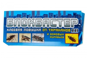Блокбастер XXI — домик-ловушка от тараканов и домовых муравьев. Клеевое нетоксичное средство от тараканов и домовых муравьев. Абсолютно безвредно для человека и домашних животных, не оказывает раздражающего эффекта на кожу. Клеевые ловушки просты в применении и могут быть установлены в любом месте, в т. ч. в местах хранения пищевых продуктов. Вскрытые ловушки сохраняют активность в течение 3 - x месяцев.
