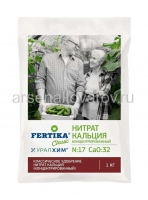 Удобрение Нитрат кальция Фертика• Двухкомпонентное водорастворимое удобрение.• Содержит доступный азот и в повышенном количестве растворимый кальций.• Рекомендуется для подкормки овощных и плодовых культур.• Способствует наращиванию вегетативной массы, формированию и укреплению скелетных тканей растений.• Улучшает лежкость овощей и фруктов при хранении.• При длительном использовании снижает кислотность и улучшает физические свойства почвы.• Препятствует появлению вершинной гнили у томатов и перцев.• Не содержит хлор.