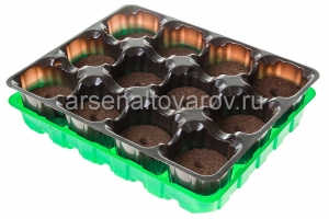 Набор для выращивания рассады пластиковый 12 мест 20,5*17*4 см с торфяными таблетками диаметр 41 мм (0288) зеленый (Умный огород) 104674